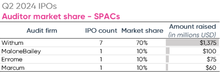 As previously stated, KPMG had the most net client gains during Q1. Deloitte followed with a net gain of nine clients, but had the most total engagements of any firm, adding 21 new clients during the quarter. KPMG and Deloitte were the only top firms to make significant client gains in Q1 2024. FORVIS added only one new client overall while Grant Thornton and Crowe broke even.